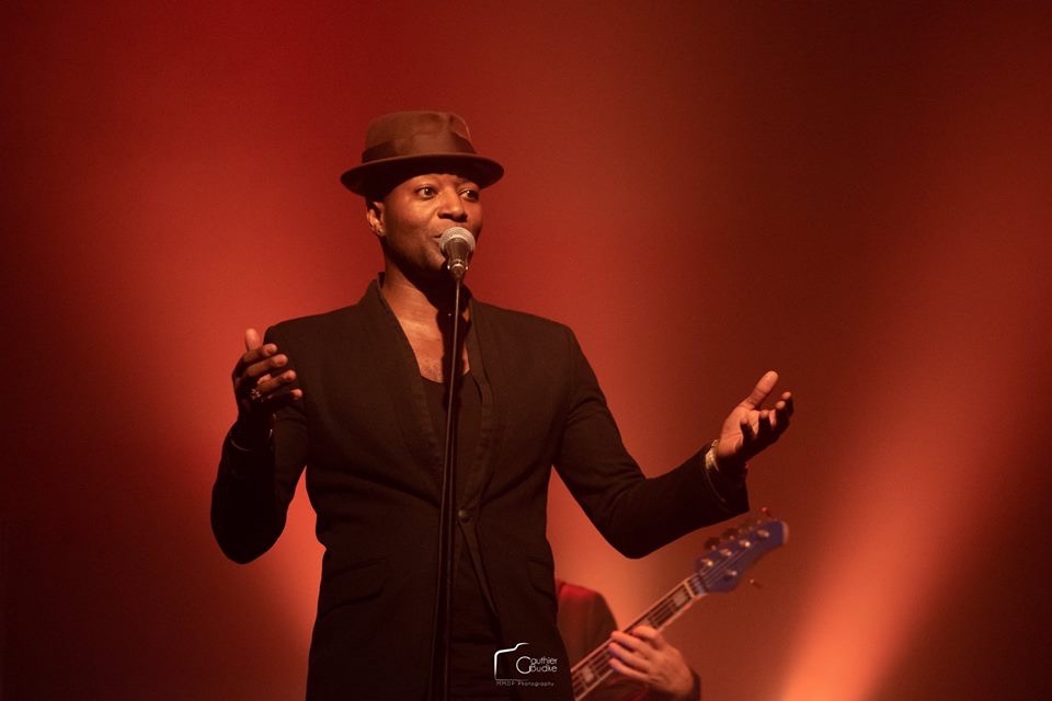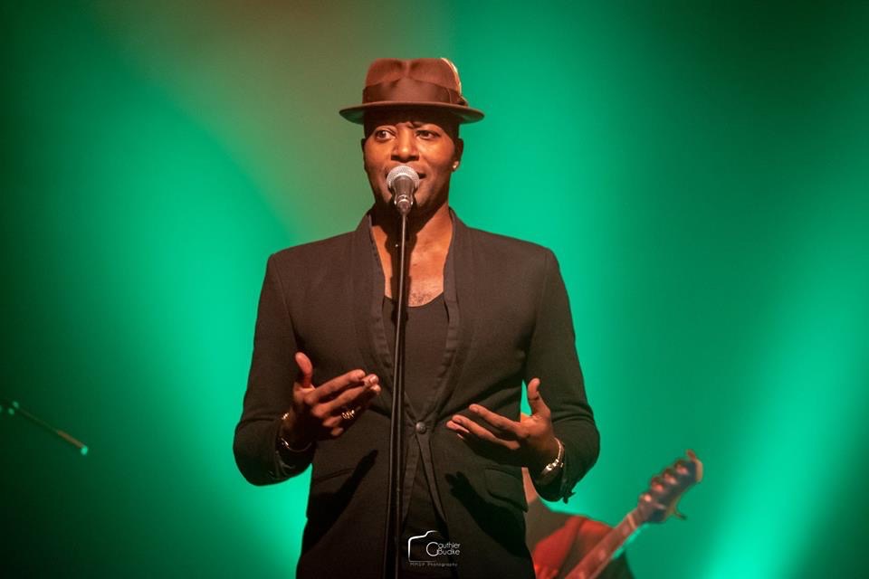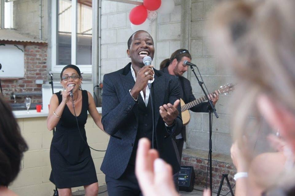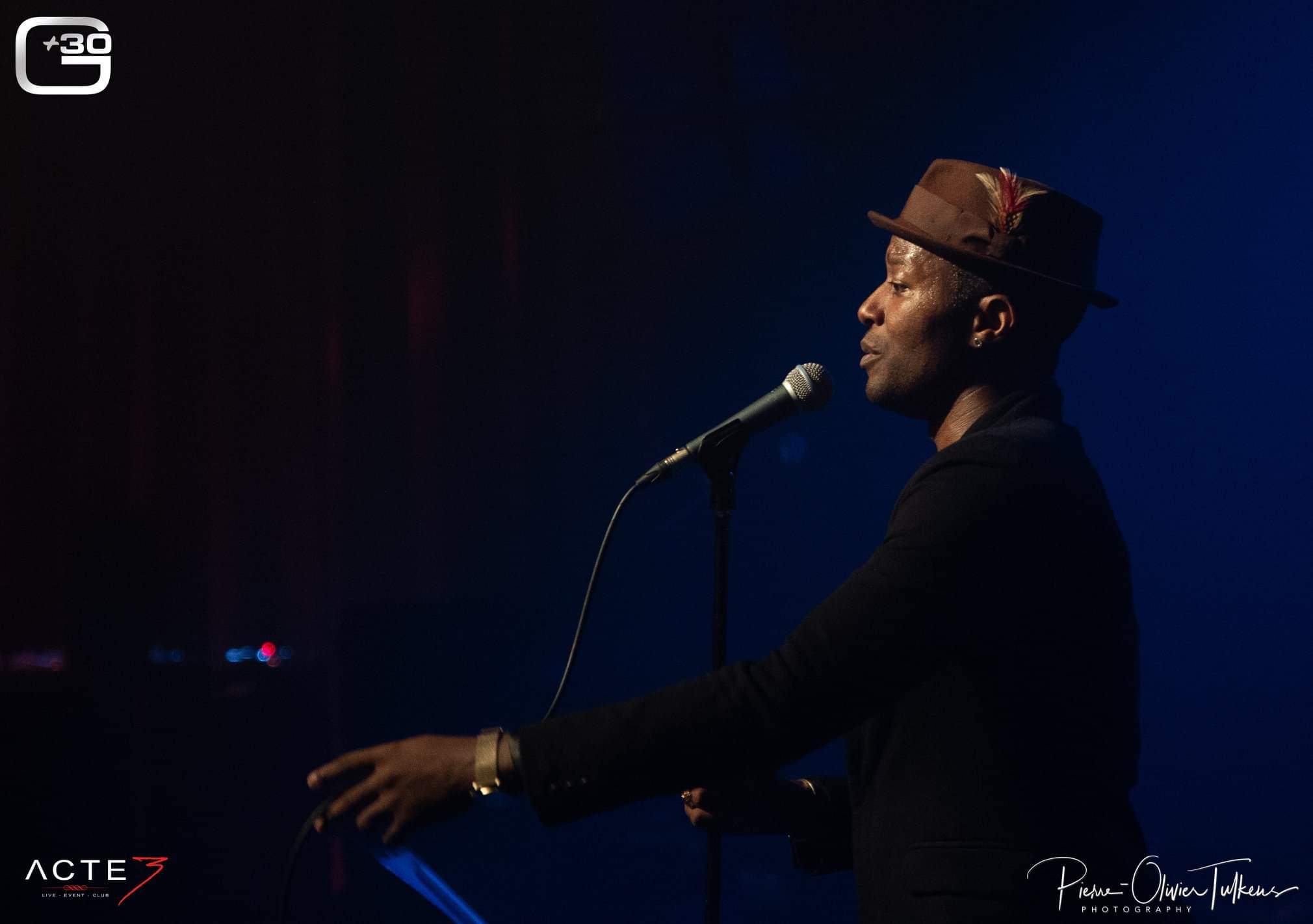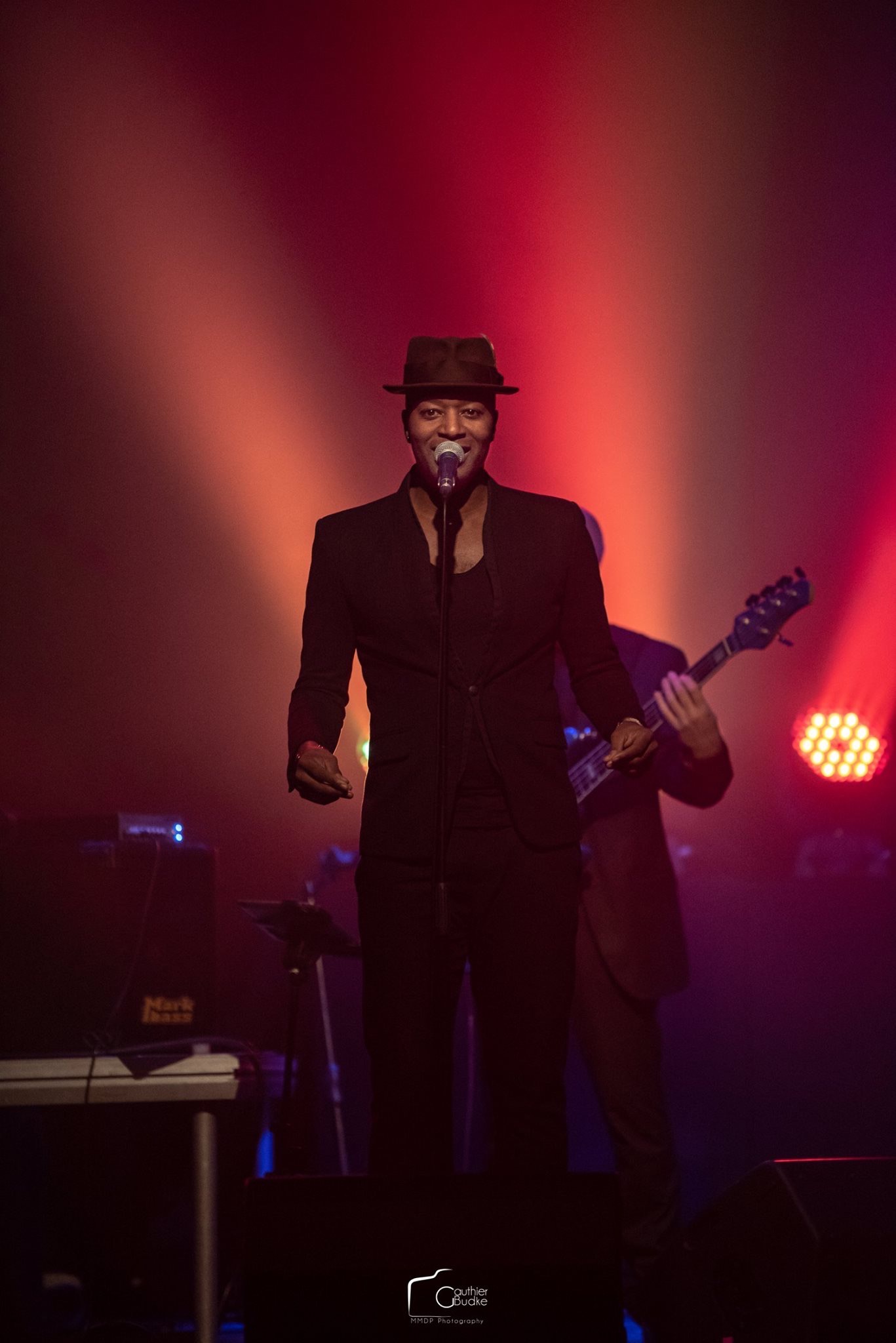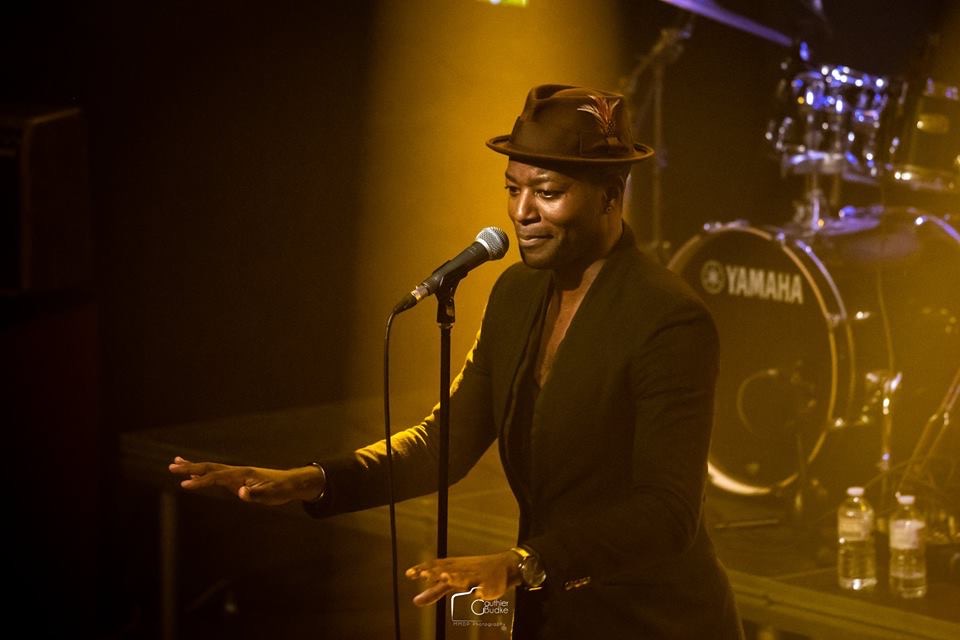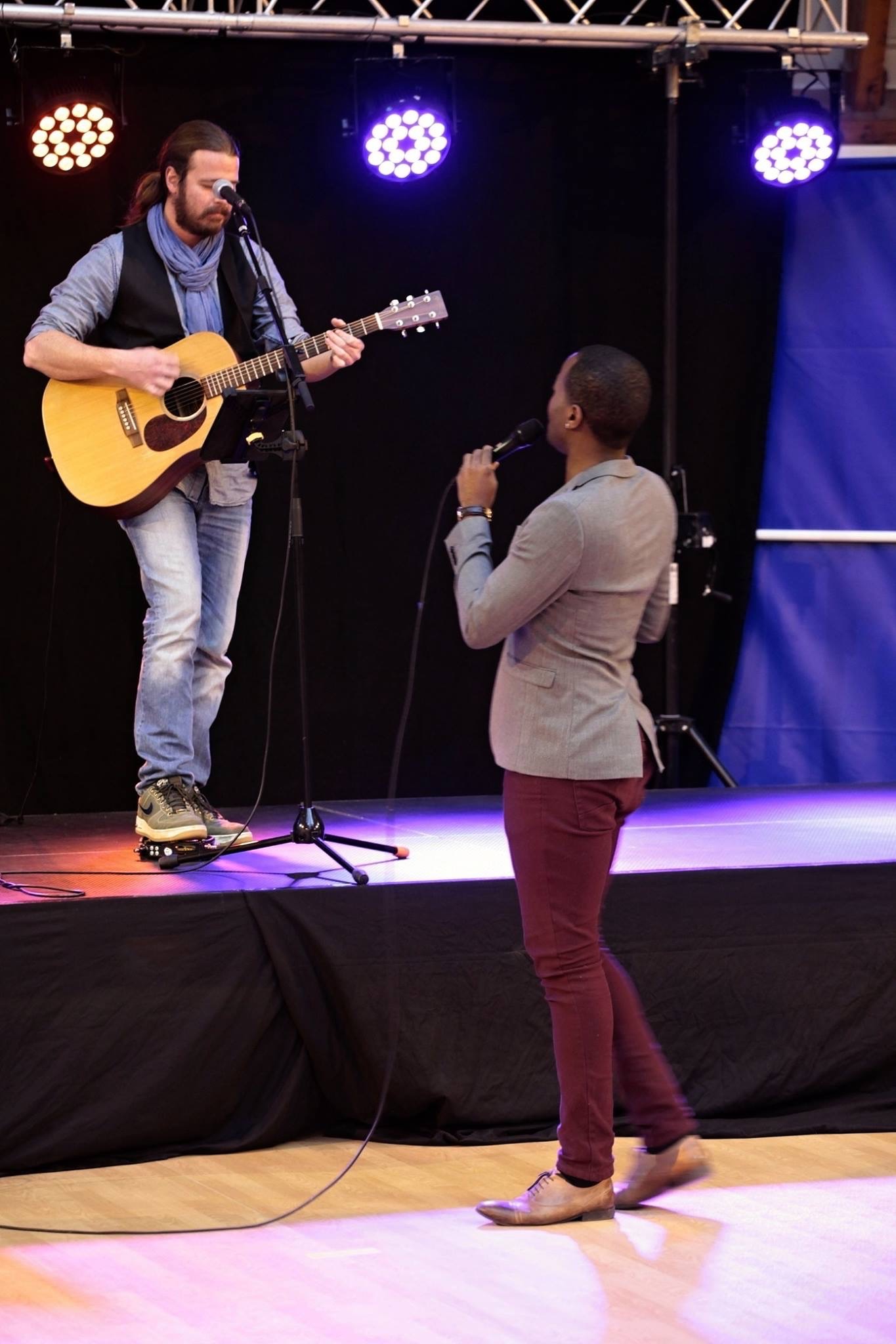 Plus de deux heures de spectacle qui ont réjoui le publique et qui a permis de récolter près de 3500 euros de dons qui seront reversés à la Cellule d’Aide aux Blessés de l’Armée de Terre. Chanteur accompagné par la musique des Forces Terrestres devant le publique.