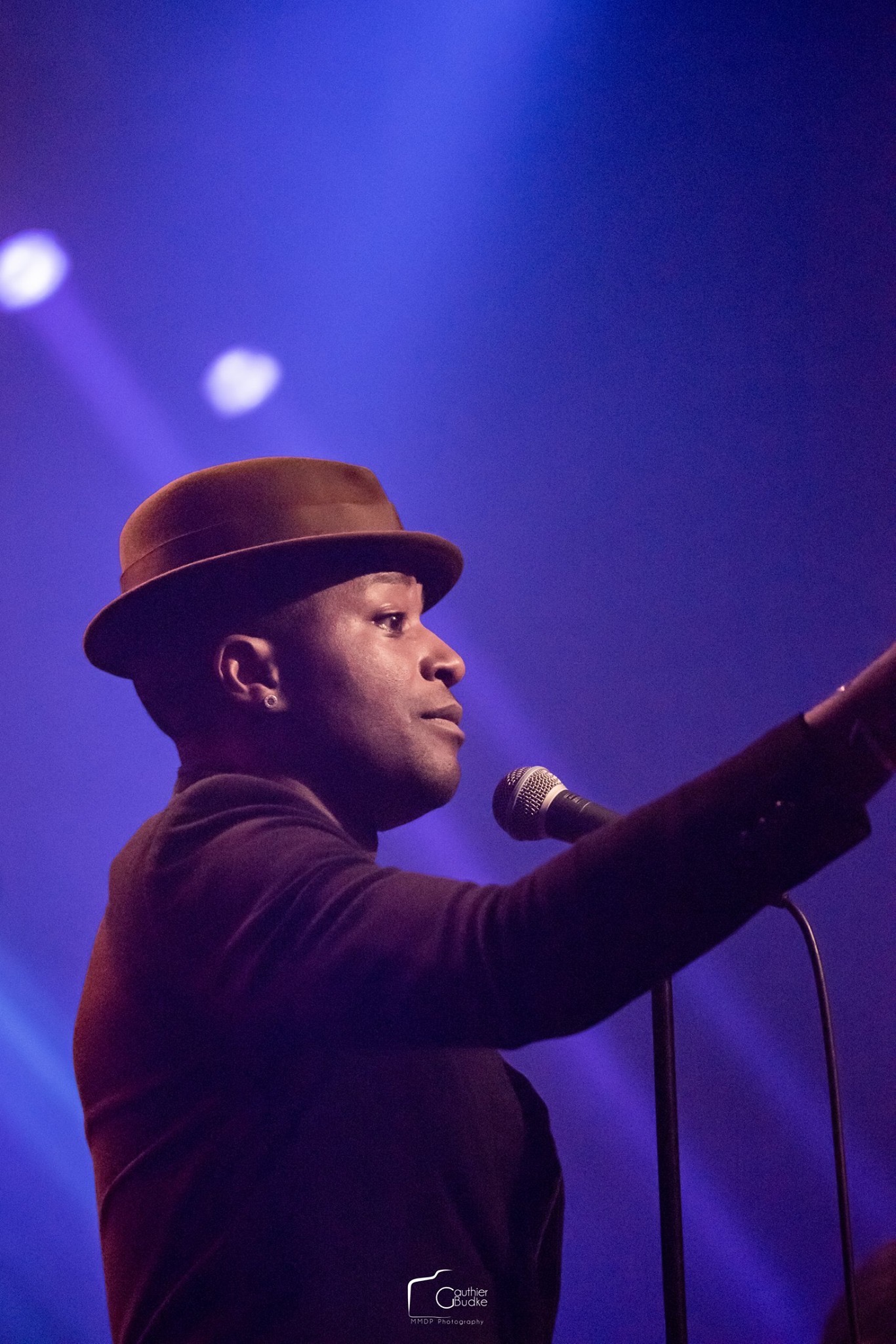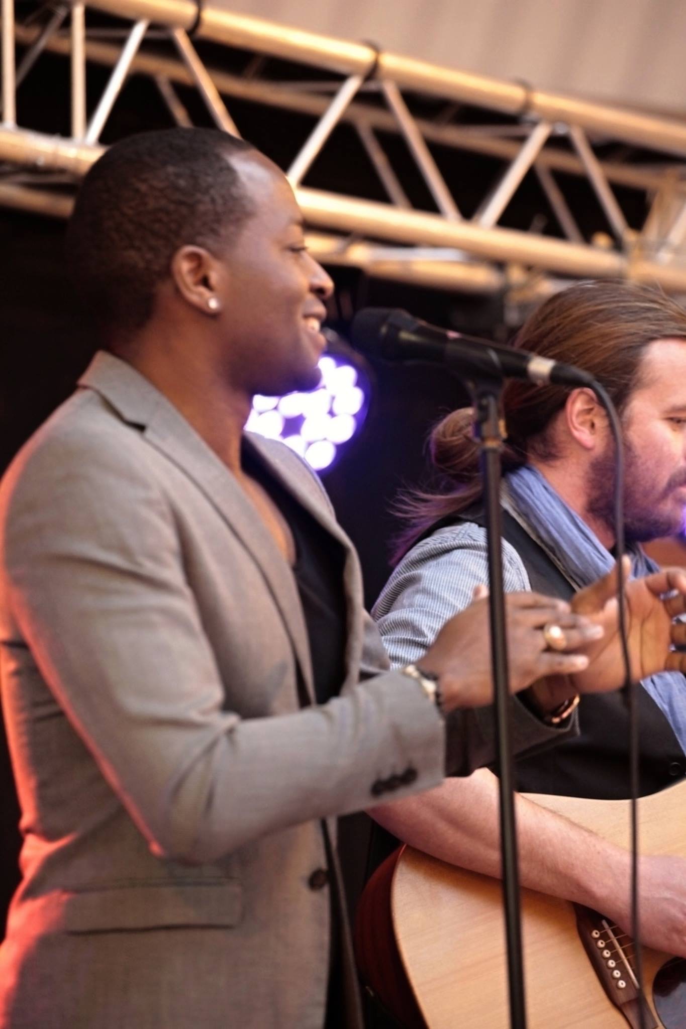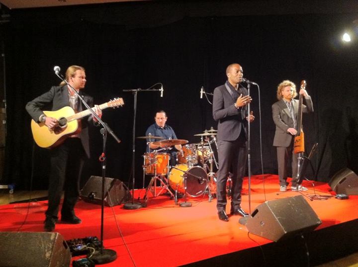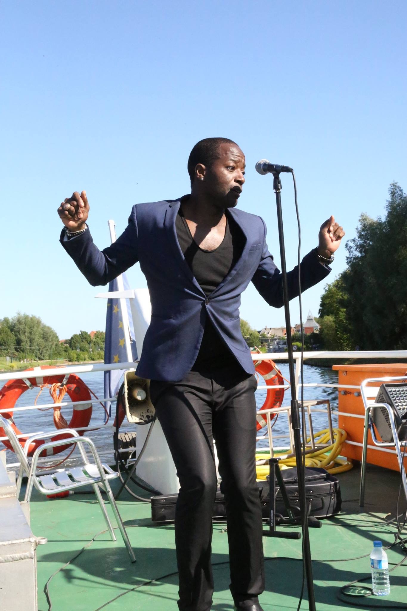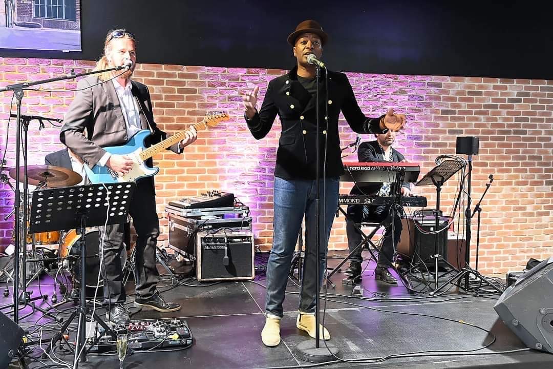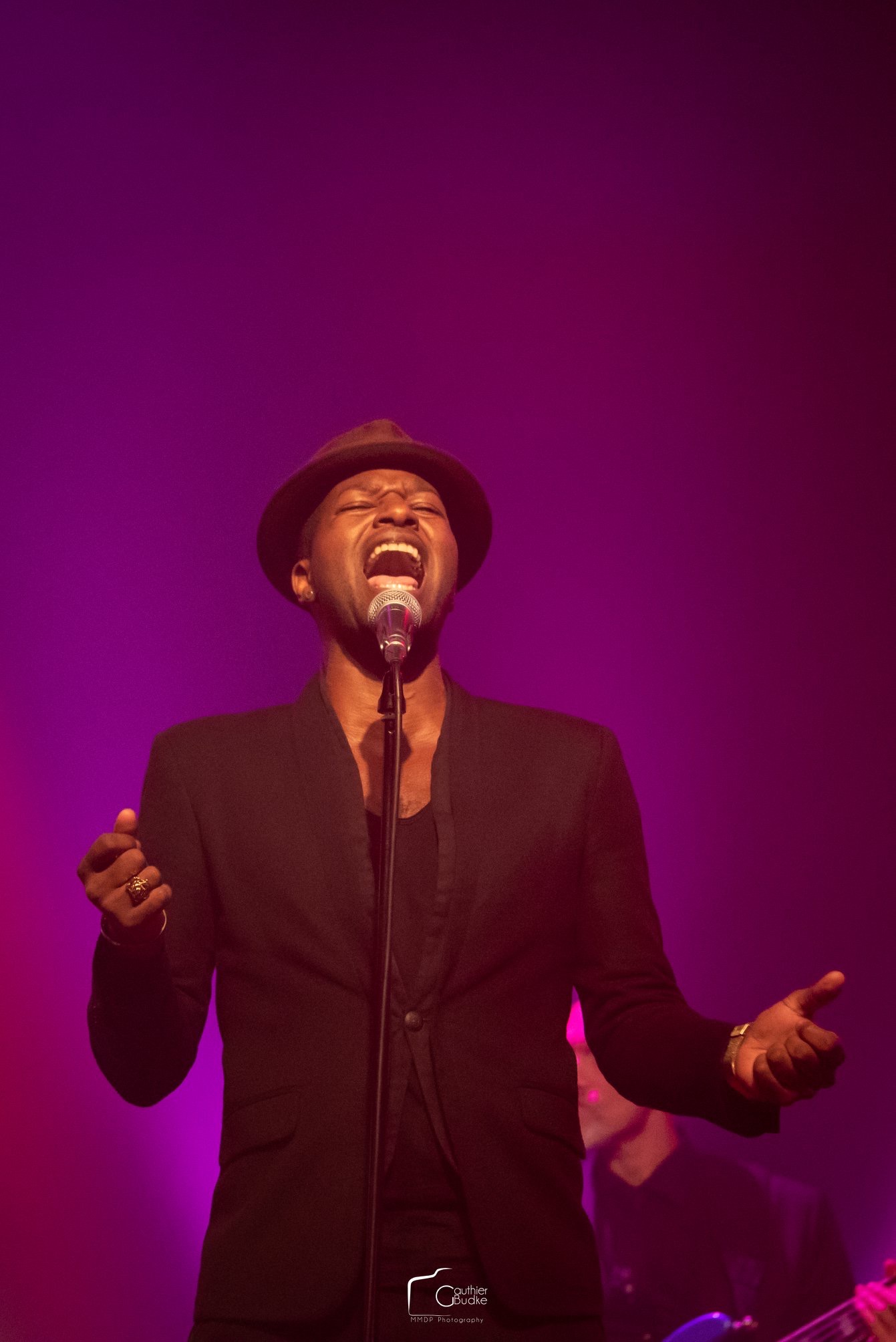 Plus de deux heures de spectacle qui ont réjoui le publique et qui a permis de récolter près de 3500 euros de dons qui seront reversés à la Cellule d’Aide aux Blessés de l’Armée de Terre. Chanteur accompagné par la musique des Forces Terrestres devant le publique.
