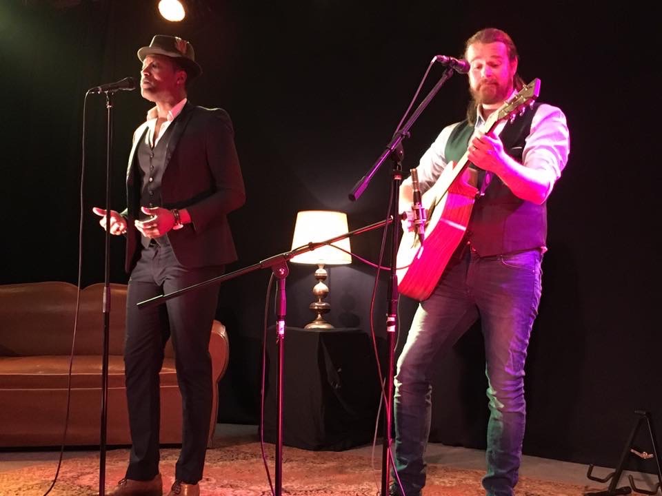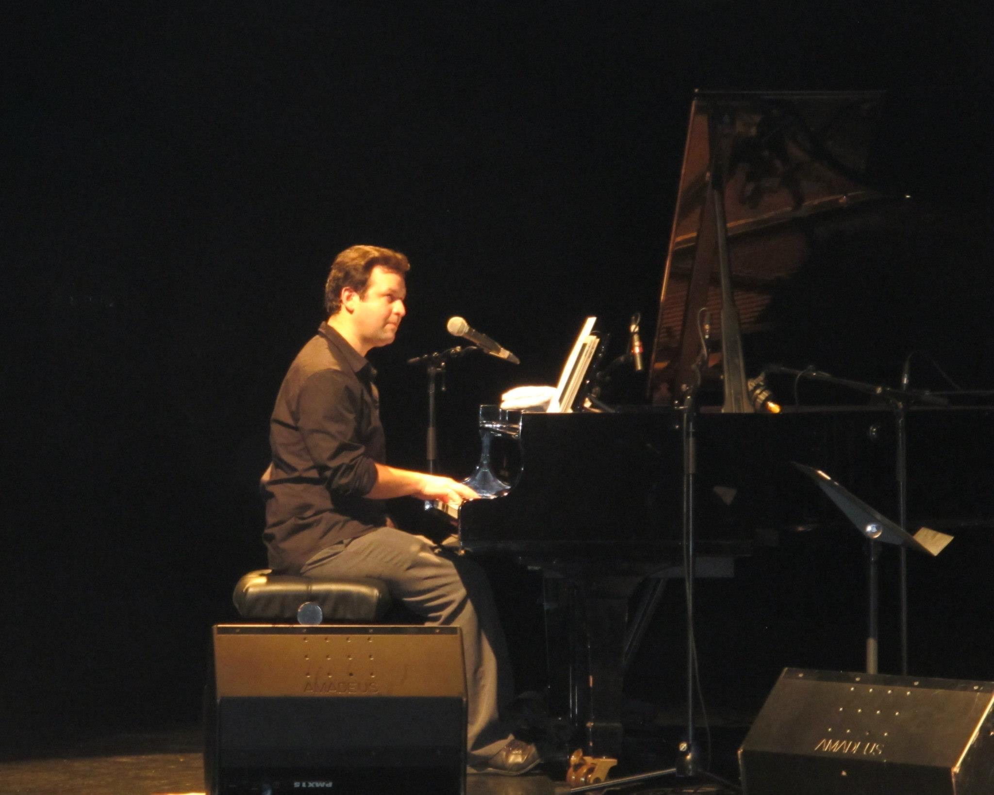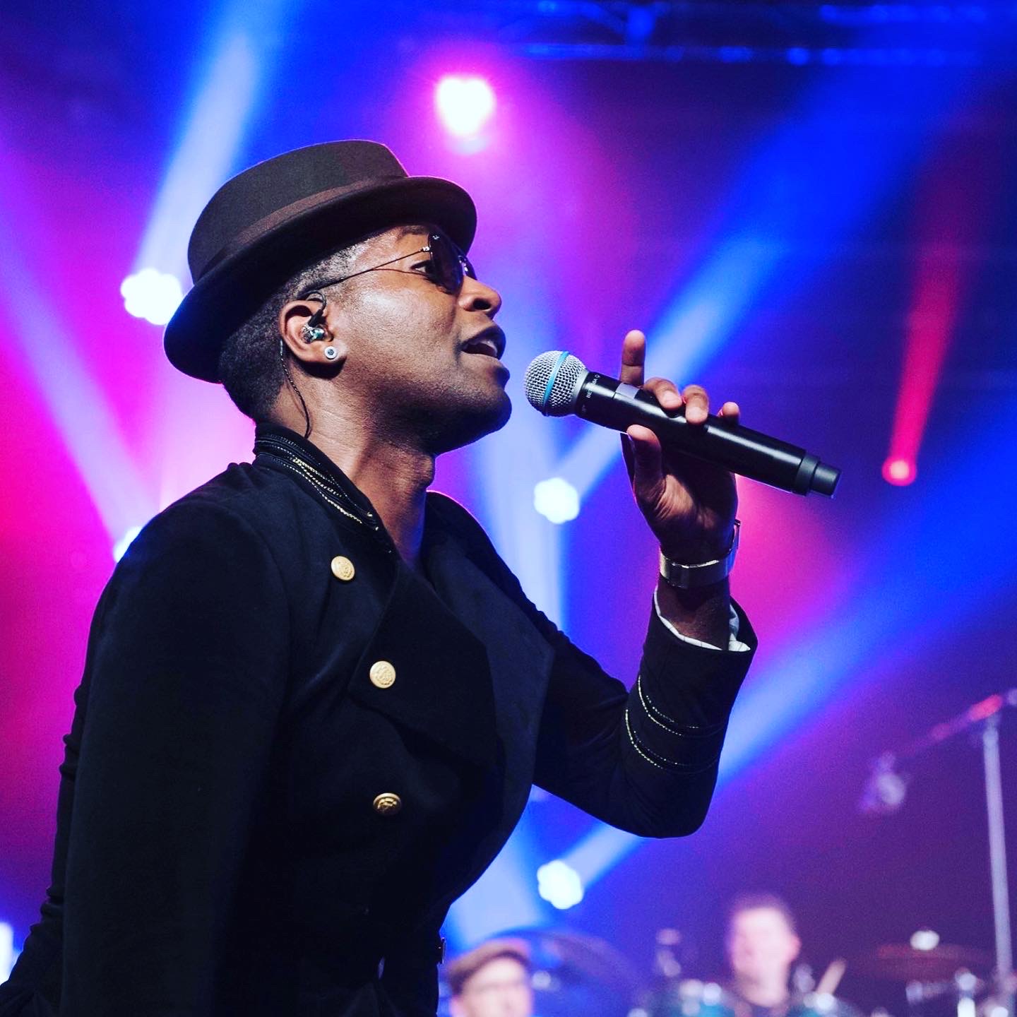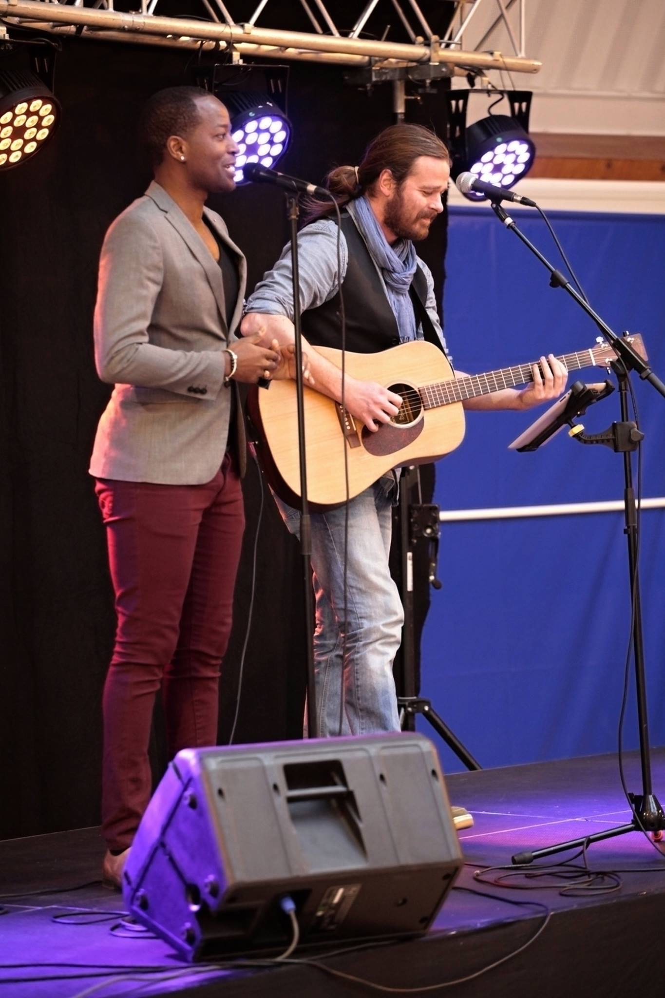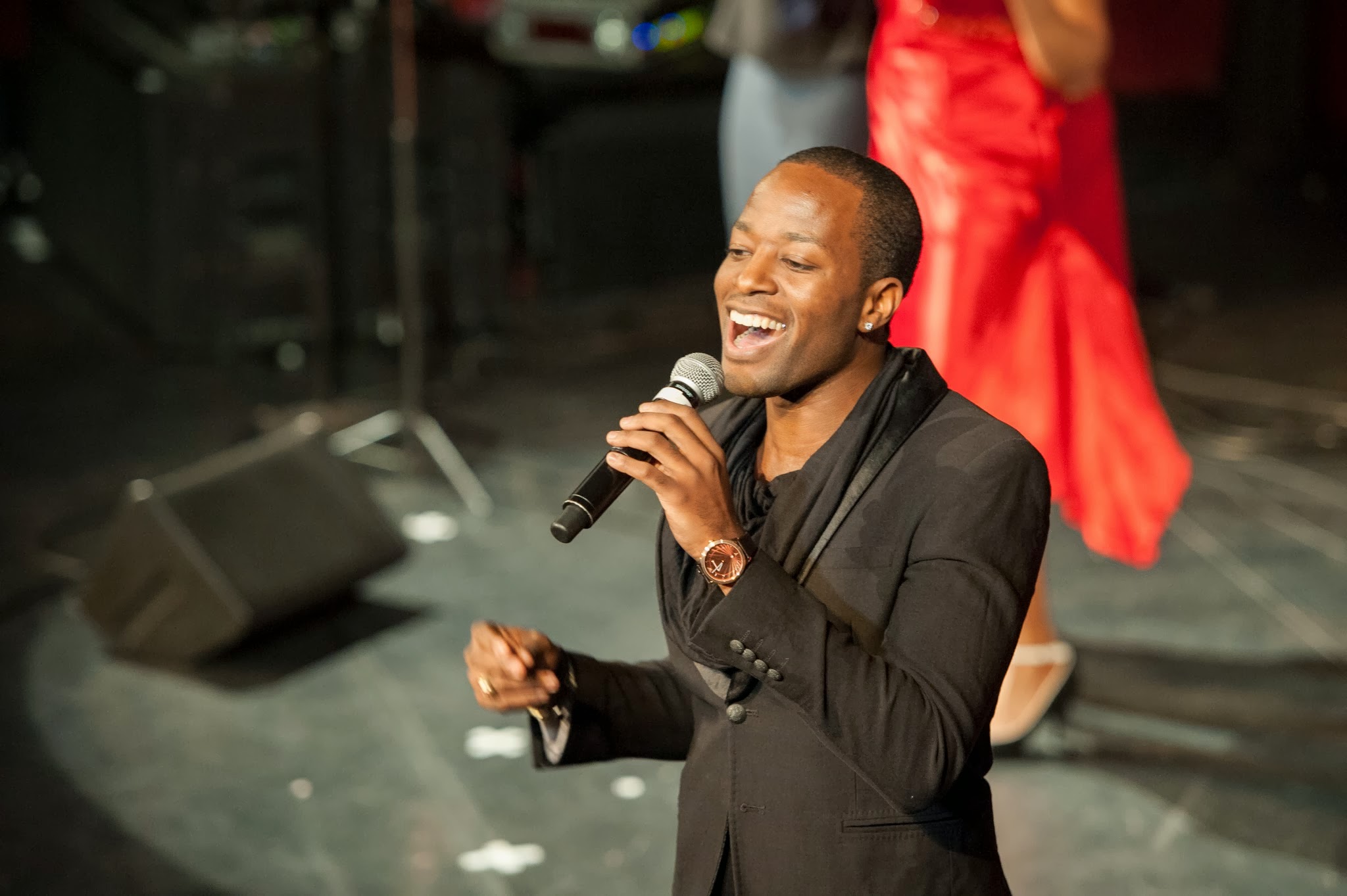 Plus de deux heures de spectacle qui ont réjoui le publique et qui a permis de récolter près de 3500 euros de dons qui seront reversés à la Cellule d’Aide aux Blessés de l’Armée de Terre. Chanteur accompagné par la musique des Forces Terrestres devant le publique.