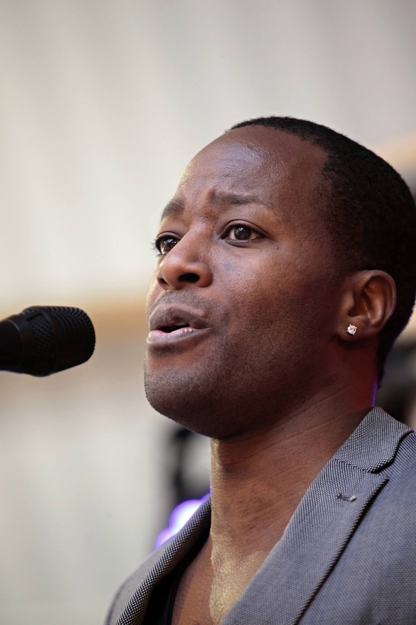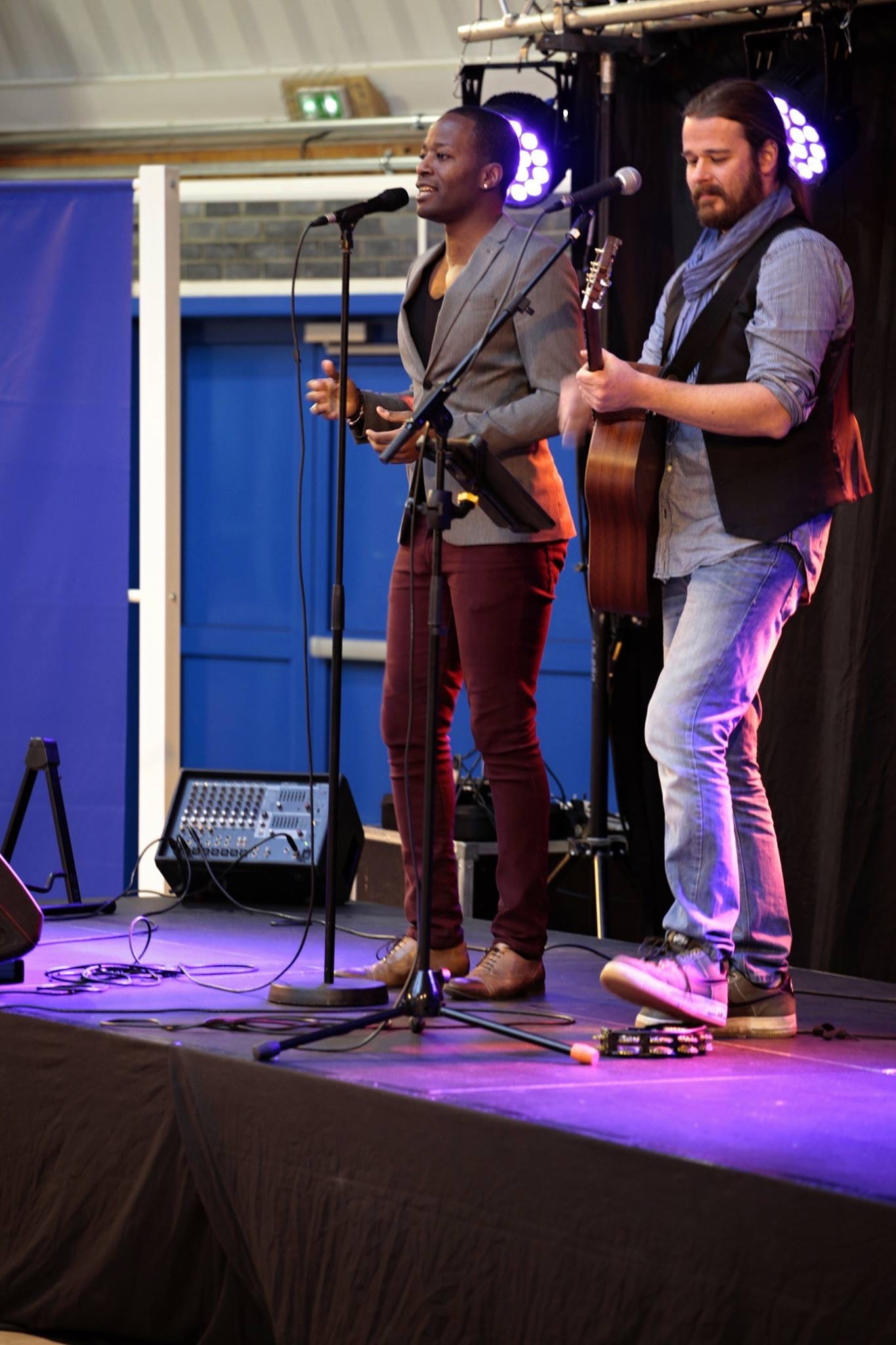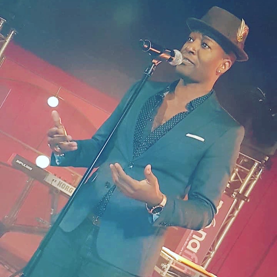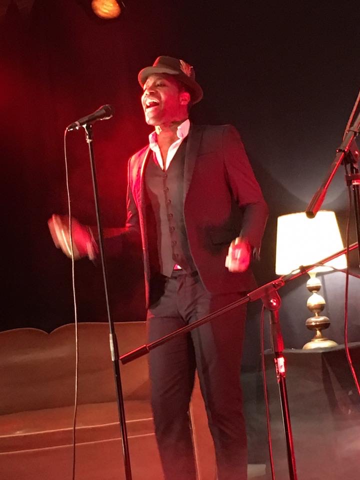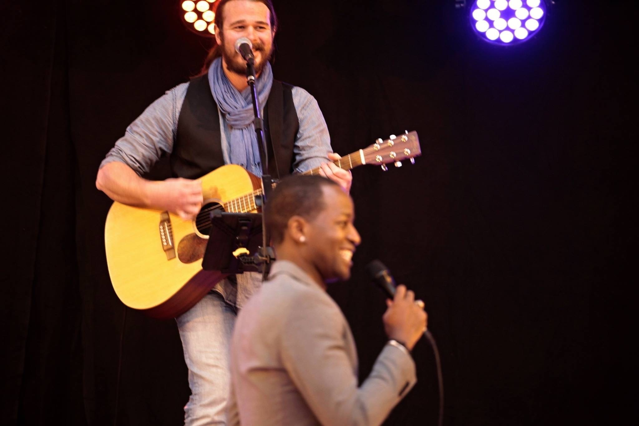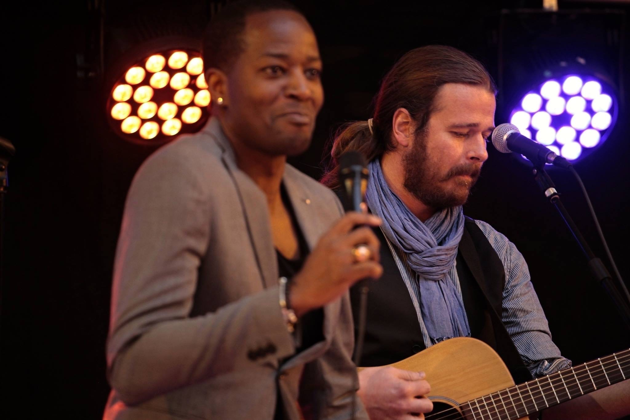Plus de deux heures de spectacle qui ont réjoui le publique et qui a permis de récolter près de 3500 euros de dons qui seront reversés à la Cellule d’Aide aux Blessés de l’Armée de Terre. Chanteur accompagné par la musique des Forces Terrestres devant le publique.
