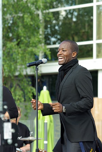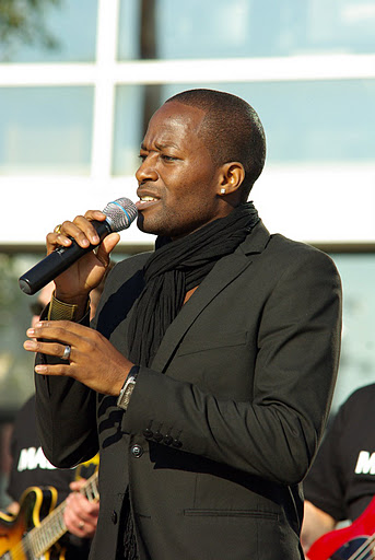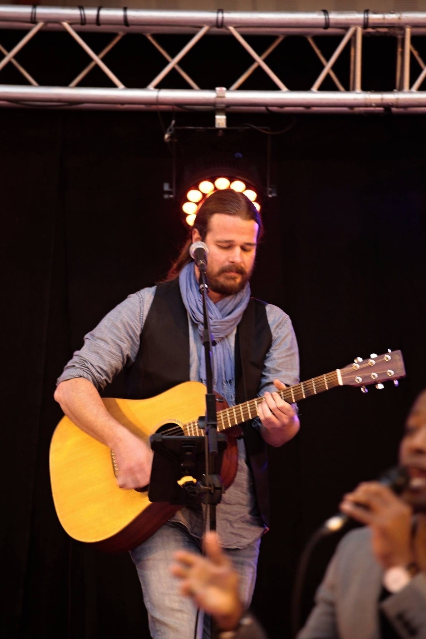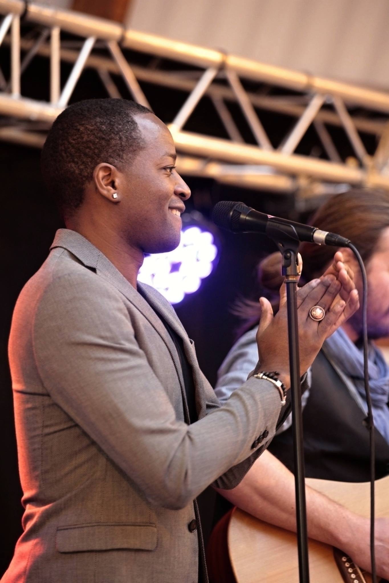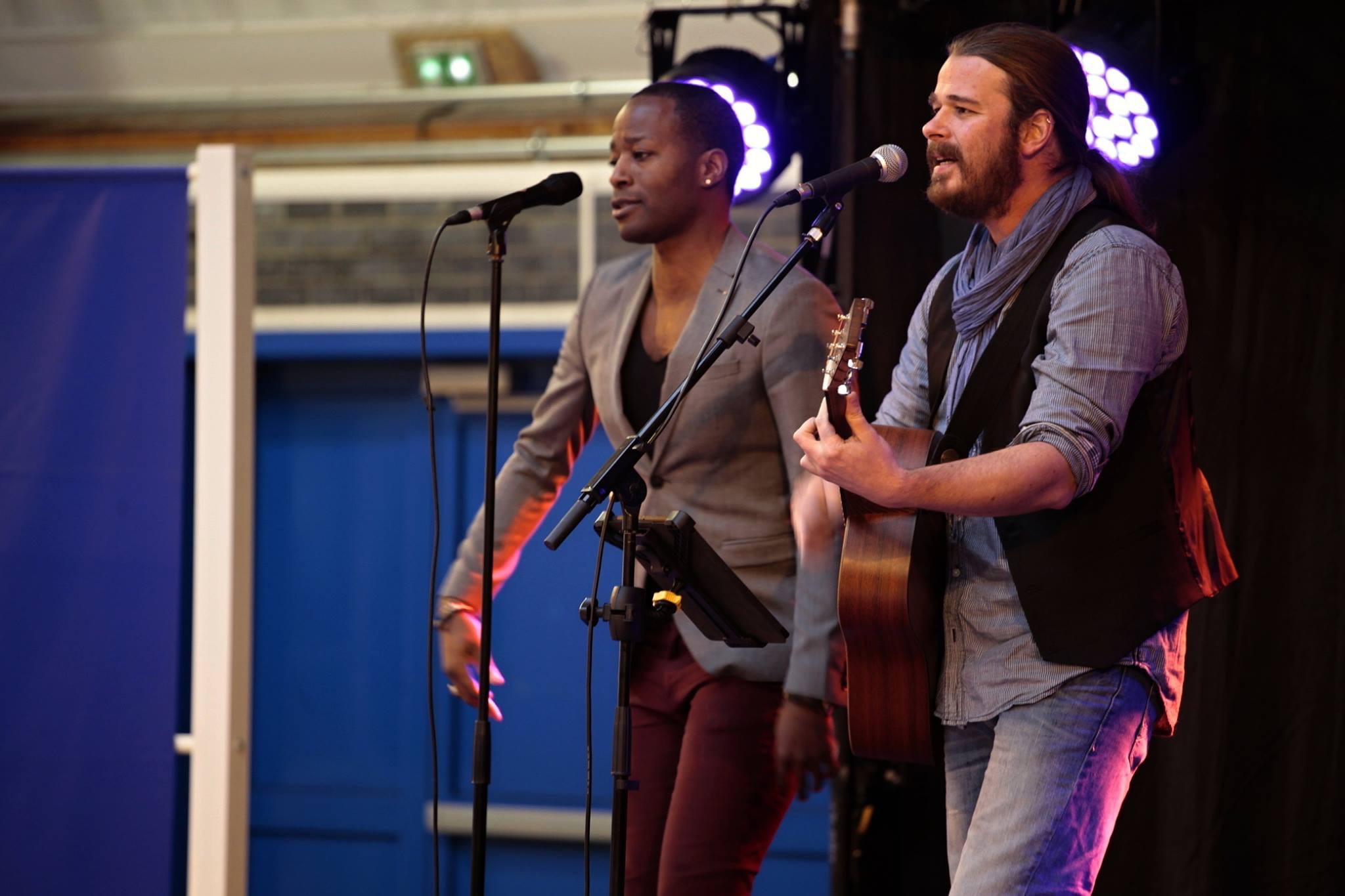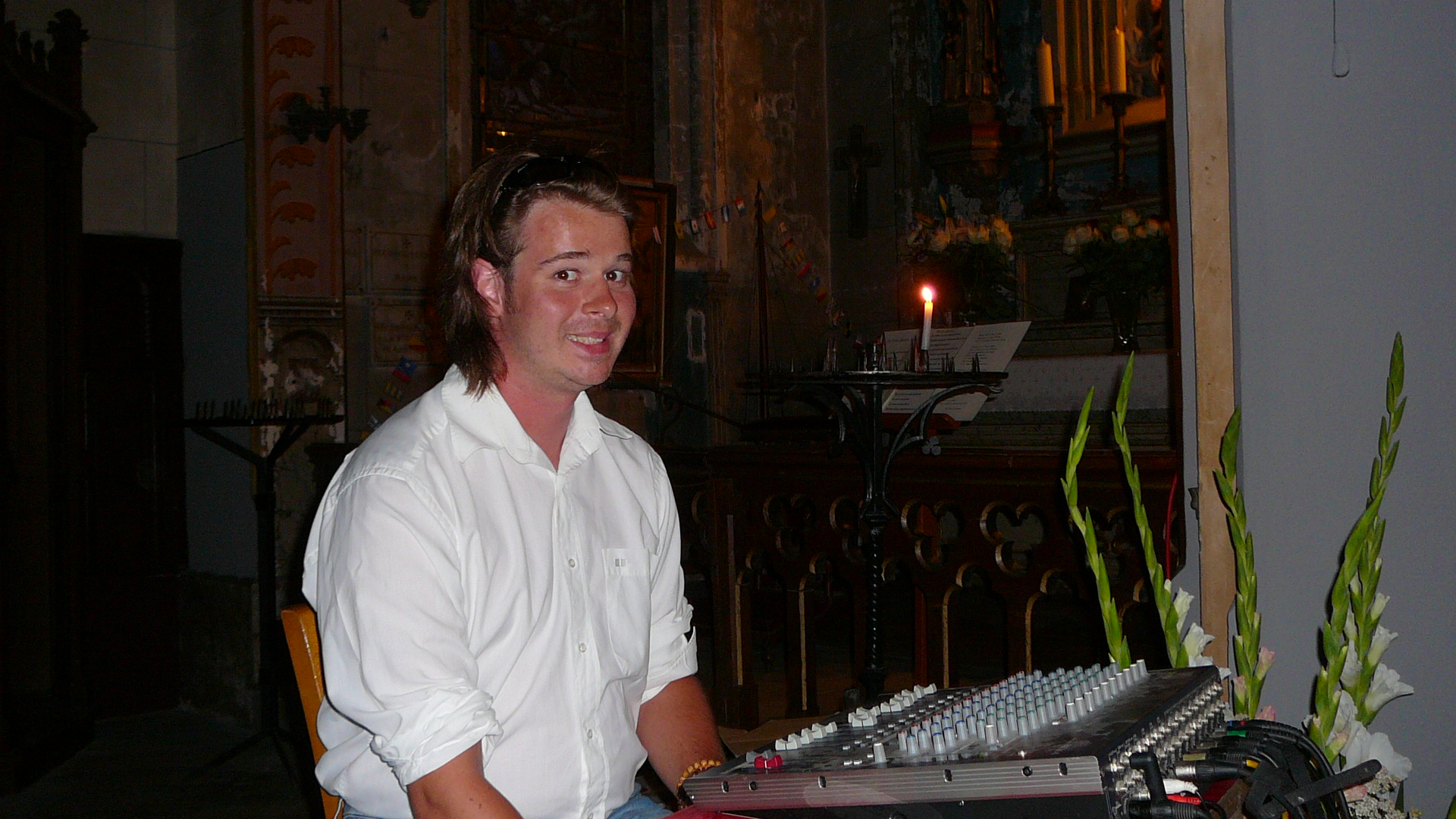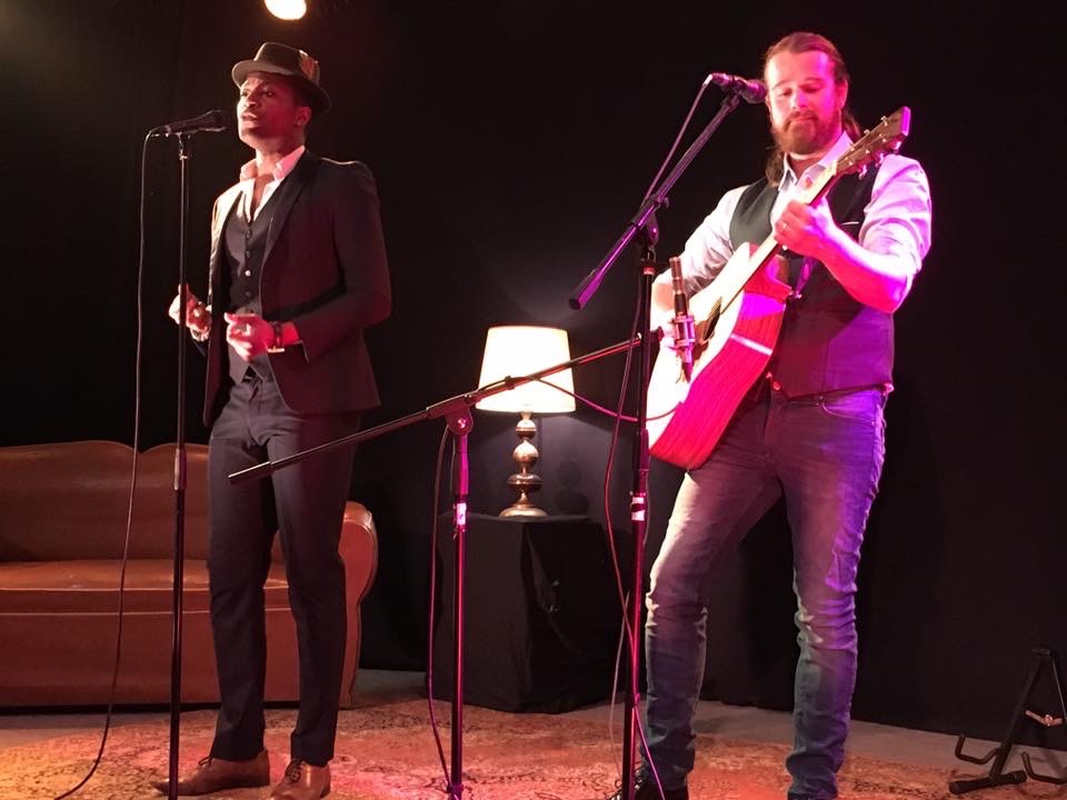 Plus de deux heures de spectacle qui ont réjoui le publique et qui a permis de récolter près de 3500 euros de dons qui seront reversés à la Cellule d’Aide aux Blessés de l’Armée de Terre. Chanteur accompagné par la musique des Forces Terrestres devant le publique.