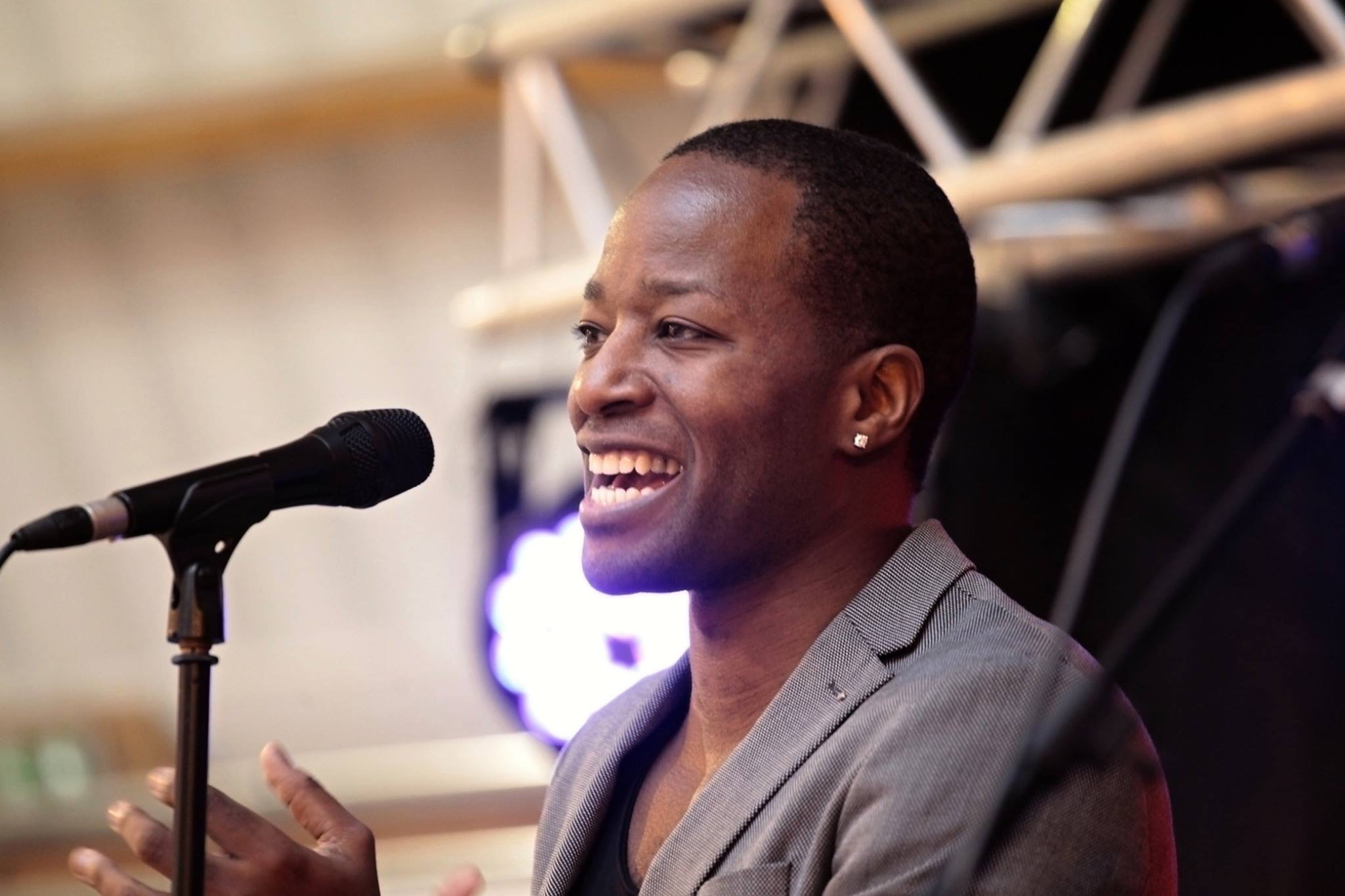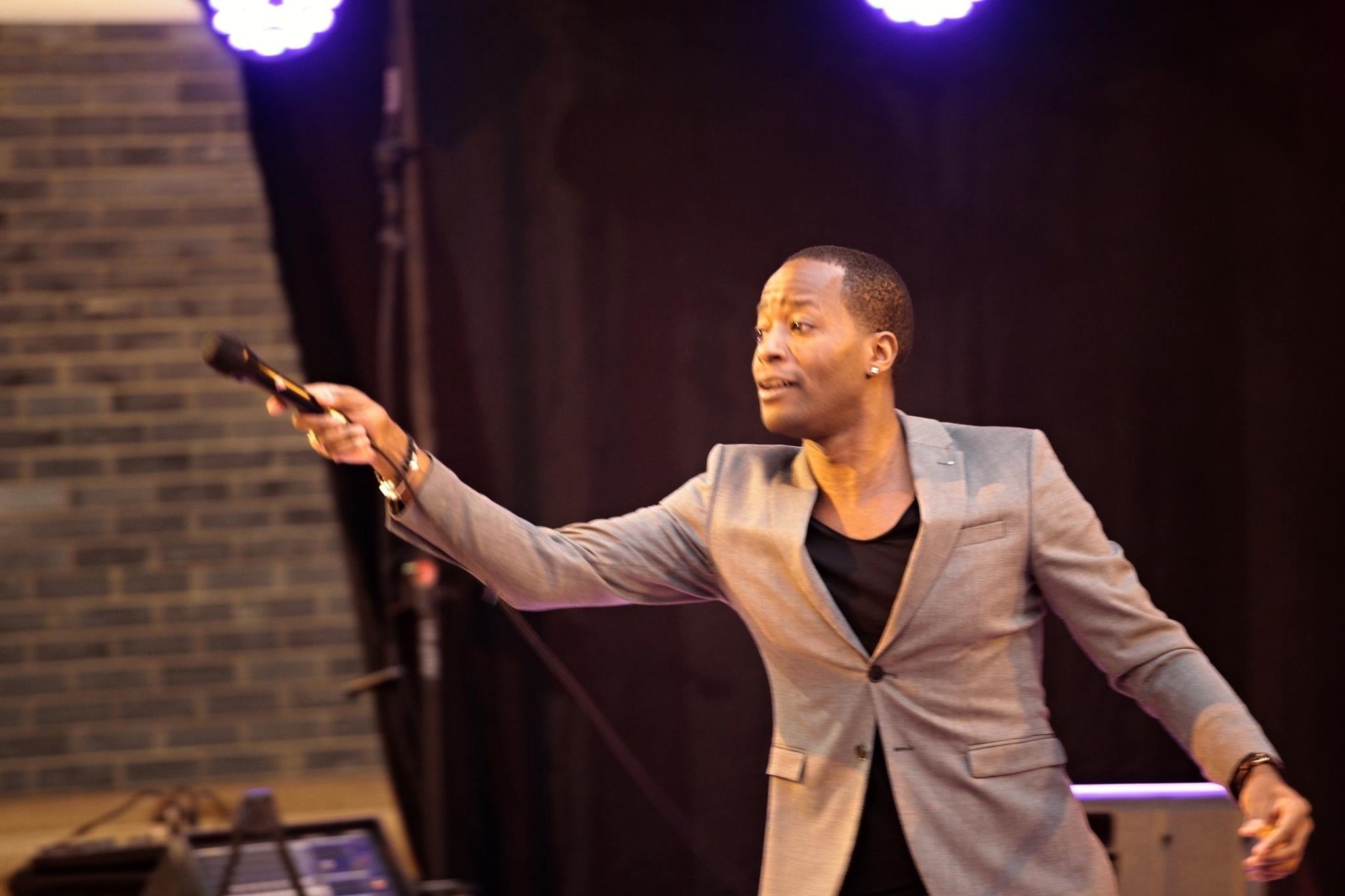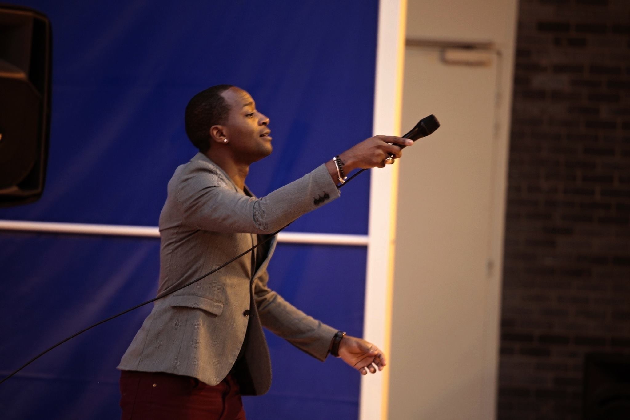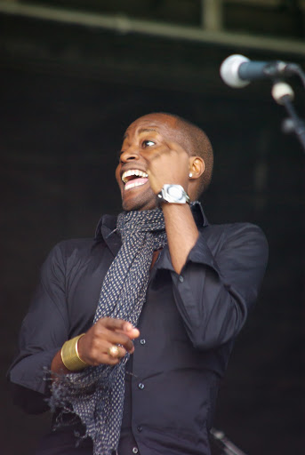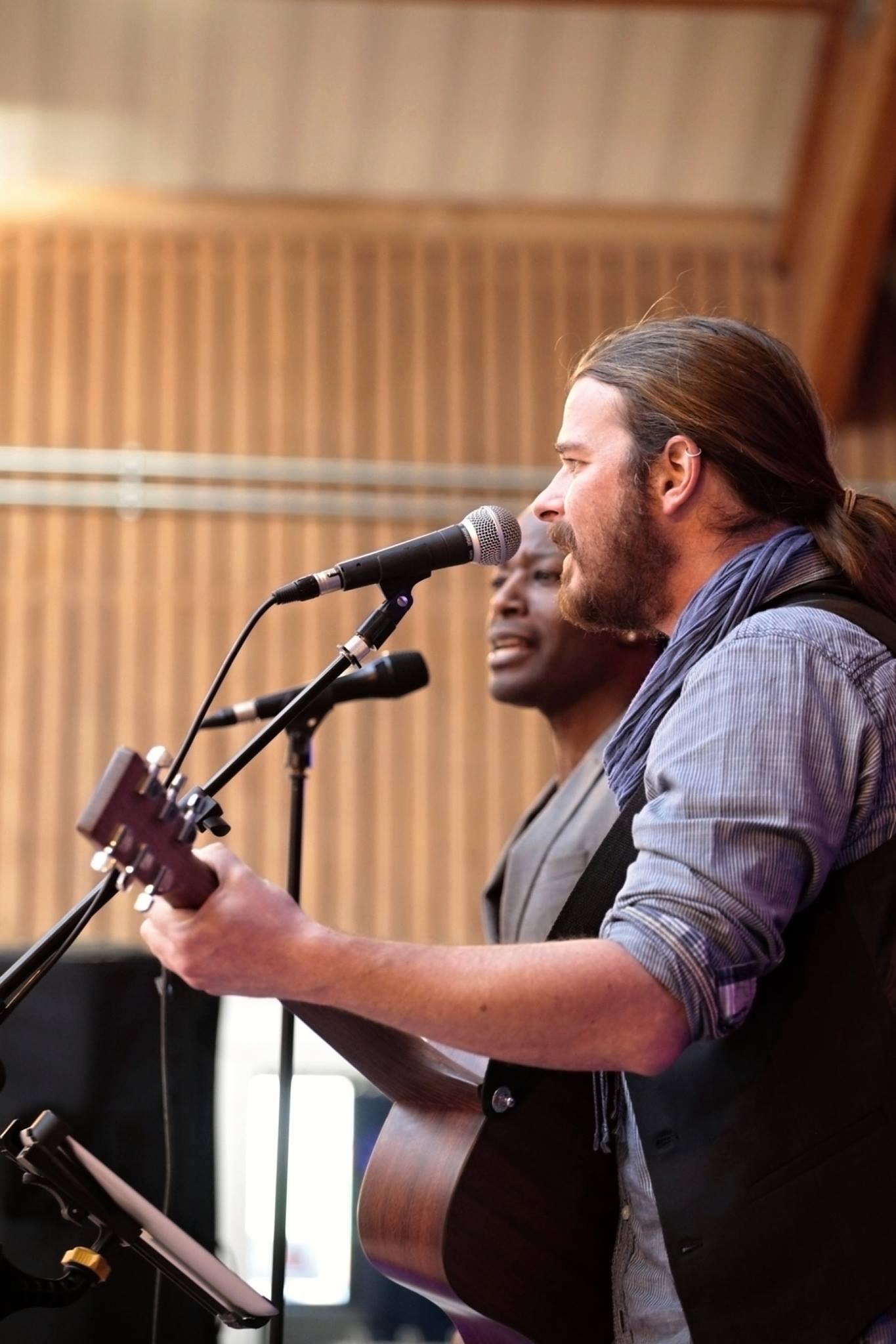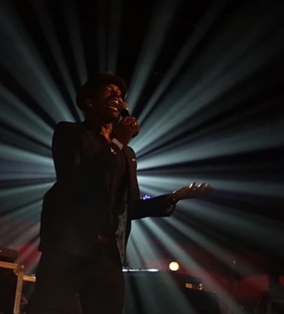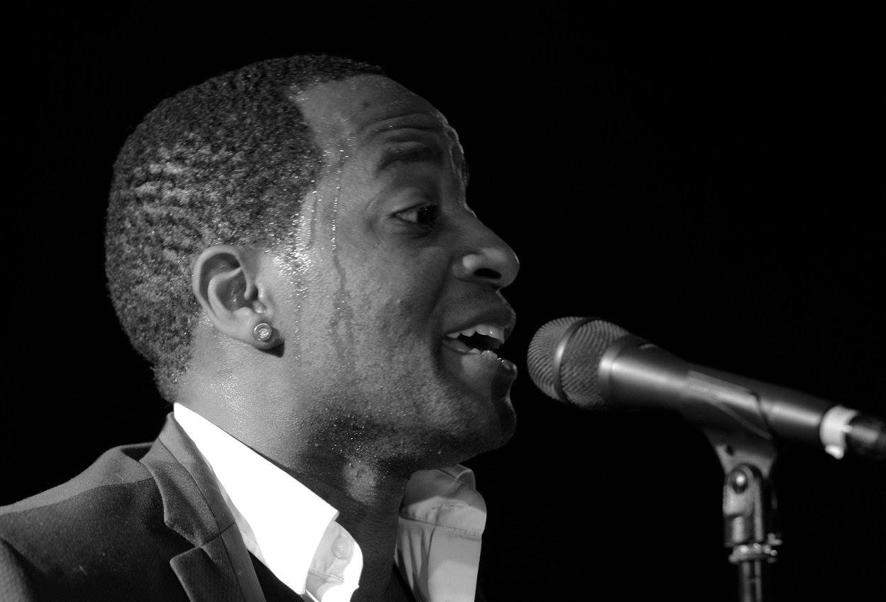 Plus de deux heures de spectacle qui ont réjoui le publique et qui a permis de récolter près de 3500 euros de dons qui seront reversés à la Cellule d’Aide aux Blessés de l’Armée de Terre. Chanteur accompagné par la musique des Forces Terrestres devant le publique.